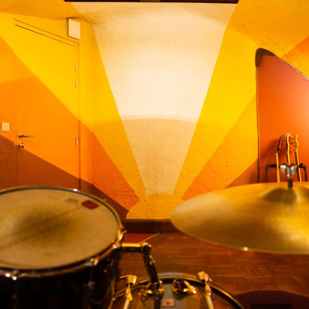 Le studio est composé d’une salle de prise de 22m² et d’une régie de 8m² dessinées par un cabinet d’architeque spécialisé, pour une acoustique maitrisée. Le lieu comprend aussi une cabine ampli et un salon cuisine.
